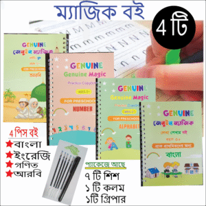 4 PCS Kids Magic Handwritting Practice Book (Bangla,English, Math & Arbi)